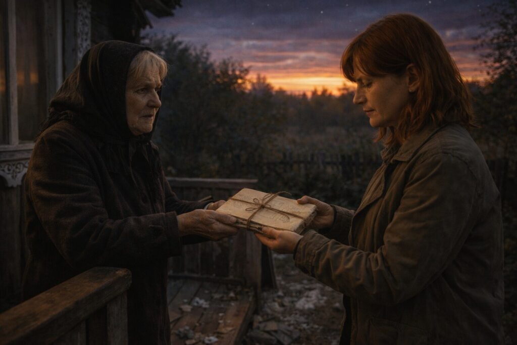 Старушка кивнула. Достала из-под платка свёрток — старый, пожелтевший, перевязанный бечёвкой.