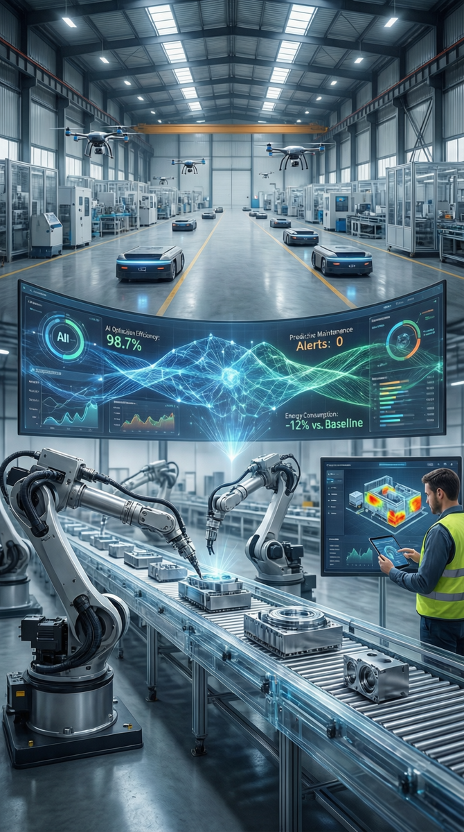 Современное производство — это оркестр из сотен процессов. ИИ выступает в роли дирижера, который слышит каждую фальшивую ноту. Он анализирует гигантские массивы данных со всего предприятия, чтобы оптимизировать: