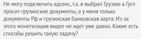 Очередной типичный кейс, который я вижу каждую неделю 👇 «Выбрал Грузию для AdSense. Google просит грузинские документы, а у меня только документы РФ и грузинская банковская карта. Монетизация не идёт уже давно. Что делать?» И вот здесь ключевая ошибка, о которой я постоянно говорю. ❌ В чём проблема на самом деле AdSense — это не про банковскую карту. И не про VPN. И не про “какая страна сейчас меньше трогается”. AdSense — это про подтверждаемую налоговую и юридическую связь с конкретной страной. Если вы: - выбираете страну «наугад» - не понимаете, какие документы Google запросит - не можете подтвердить налоговое резидентство / ВНЖ / личность ➡️ вы гарантированно упрётесь в блокировку монетизации потерю заработанных денег. Грузия, Армения, Казахстан, Киргизия, Европа — неважно. Важно одно: можете ли вы подтвердить аккаунт документально. 🧨 Почему “сам себе открою” чаще всего заканчивается плохо Что происходит дальше: - AdSense не подтверждается или уходит на проверку - выпла