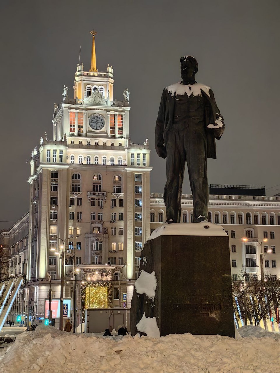 Москва, Триумфальная площадь в новогодних огнях и снегу. ❄️