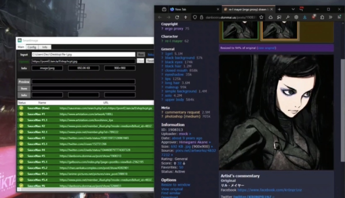 Запускается drag-and-drop, из буфера обмена или командной строки. Незаменима для проверки фактов, поиска оригинала в высоком качестве или автора арта.