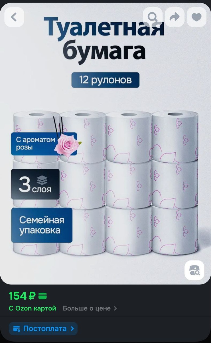 📦Туалетная Бумага ROSE 12 рулонов 3 слоя с ароматом Розы - 154р