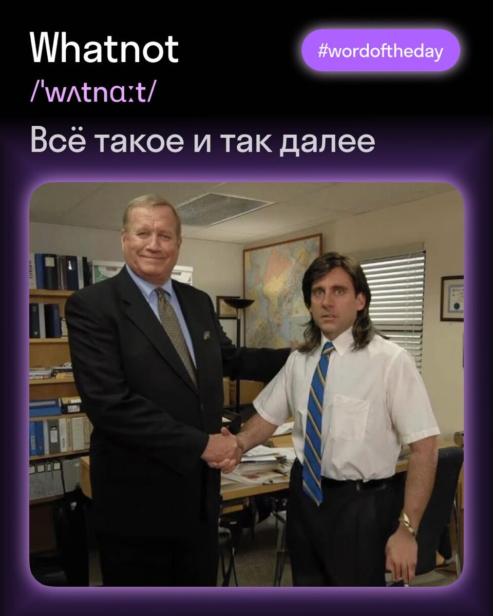 🐈⬛️ Перевод: И тому подобное / и так далее / и всё такое / всякая всячина «Bro, you’ll die and whatnot» — так бы перевели наш любимый мем с котом англоязычные люди. Whatnot — универсальное разговорное слово, которым носители добивают фразу, когда не хотят перечислять всё до конца. И звучит это мягче, чем and stuff. ▫️ Примеры: We talked about work, travel, hobbies, and whatnot. — Мы говорили о работе, путешествиях, хобби и всём таком. 🎁 Ещё 1000 самых употребляемых английских слов в одном файле: https://go.skyeng.ru/10words01tg