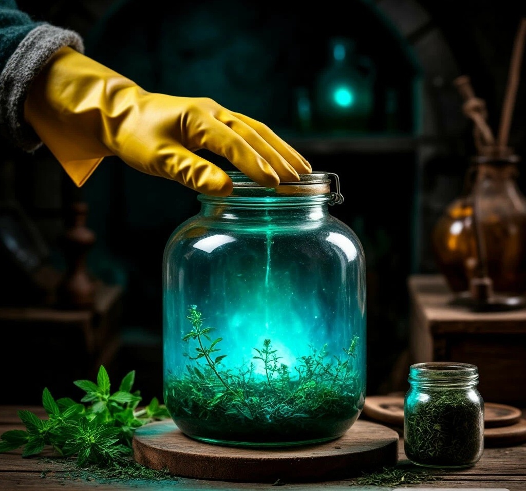 Поутру, когда супруга ушла на работу, а дочка - в школу, Владимир выполнил все, что наказывал ему странный мужичок. Банку поставил в подпол. На следующий день, снедаемый любопытством, спустился в погреб. Перчатка надулась, как шарик, внутри банки происходило бурление, а жидкость заметно посветлела и приобрела синевато-зеленый оттенок.
