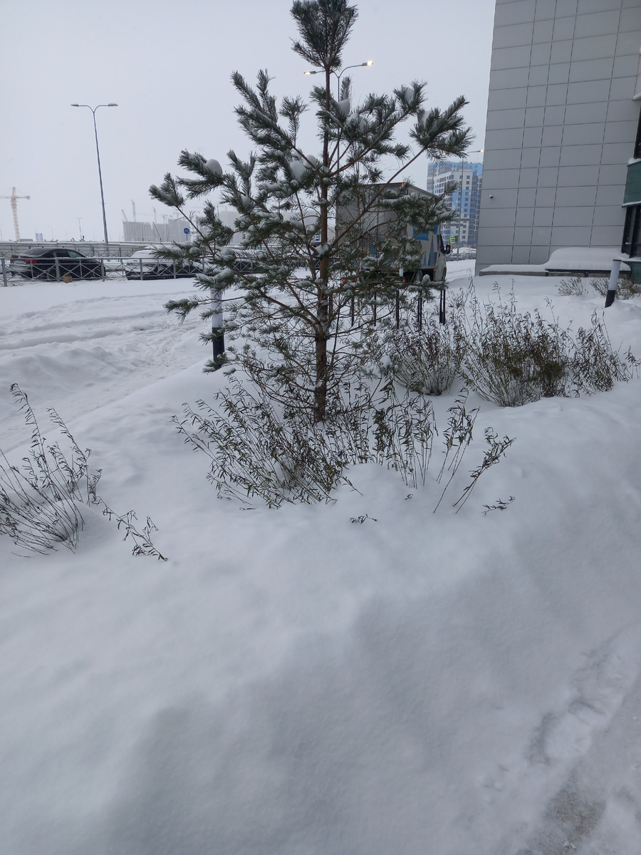 Метель так и не утихла,но шаги пройти надо.Я оделась максимально тепло и пошла гулять .Фото сделала чтобы показать уровень снега .Ветра на фото не видно,но он со всех сторон поднимает снег и несет тоже во все стороны.Такой район у нас-Намыв-дома на берегу залива,много еще не застроенных пространств ,почти нет деревьев(есть маленькие сосны).