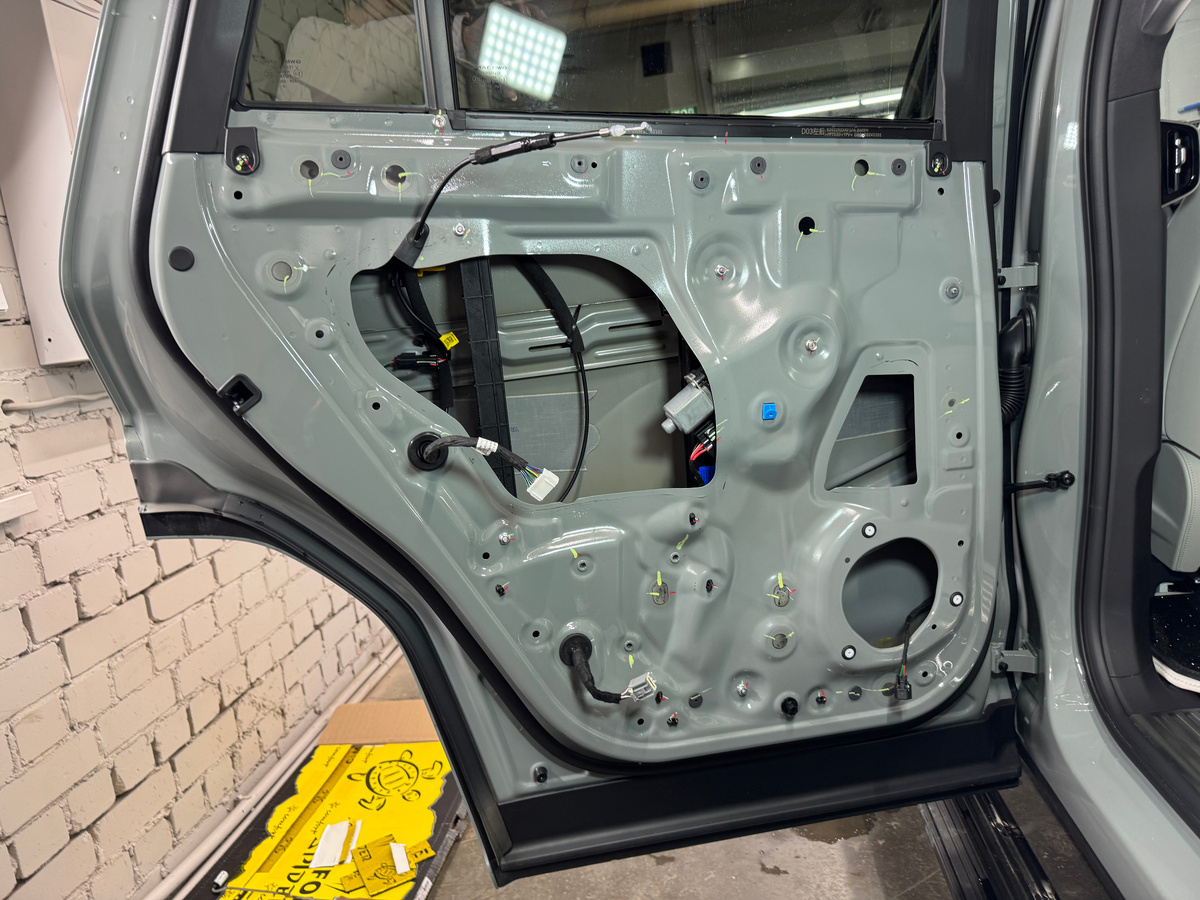 TANK 700 на шумоизоляции и установке доводчиков дверей. Несмотря на стоимость и класс автомобиля, в нём, как и в большинстве современных авто, отсутствует полноценная шумоизоляция. Мы выполнили шумоизоляцию дверей в 4 слоя, что действительно делает салон заметно тише и комфортнее. Также установили бесштыревые доводчики дверей, которые полностью заменяют штатный замок. Все крепления остаются заводскими — без доработок и вмешательства в конструкцию автомобиля. Видео с процесса: https://rutube.ru/video/50c1d751dd4e7d4316ee8fabee2f3df6/