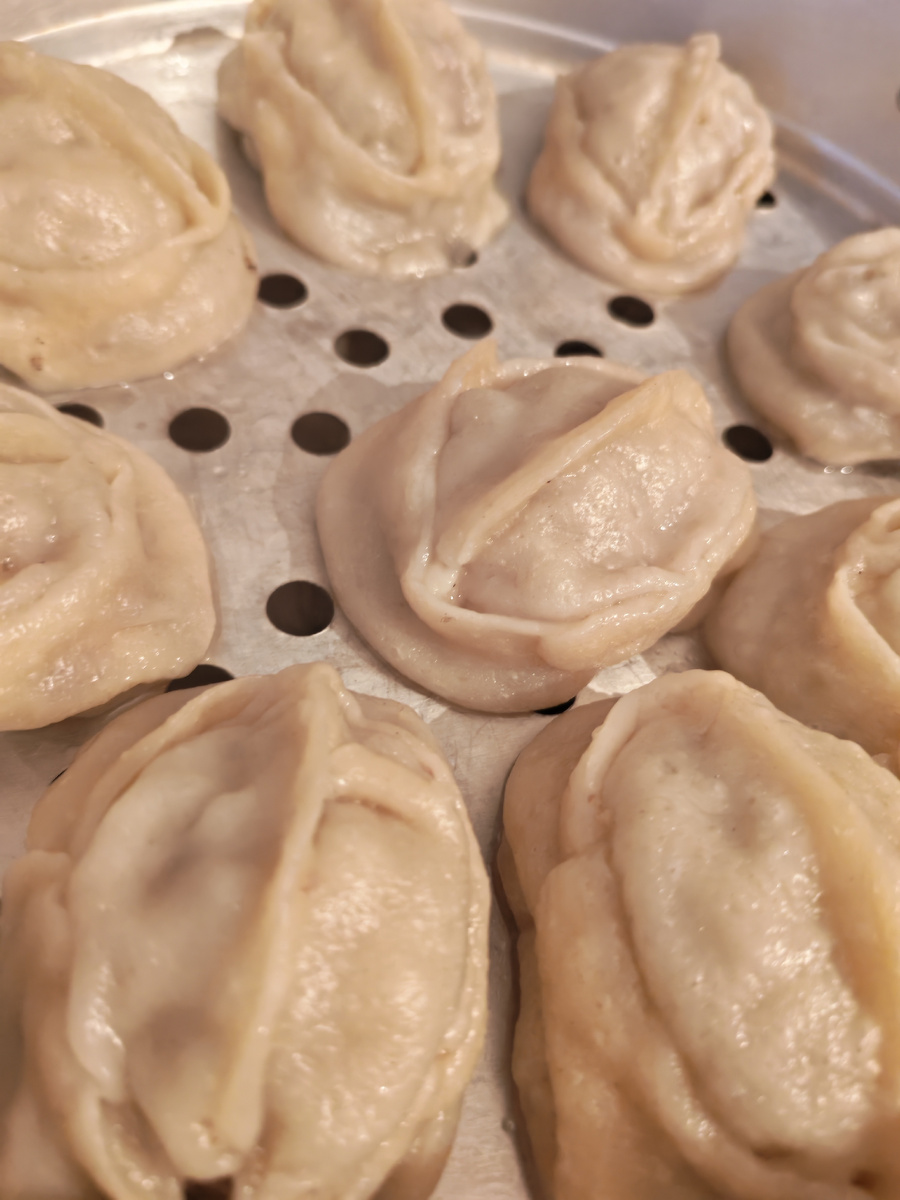 Всём доброго дня, сразу скажу для поста использовала фото из своей галереи, это манты из обычной муки. Когда будете делать из гречневой или цельнозерновой тесто будет темнее.