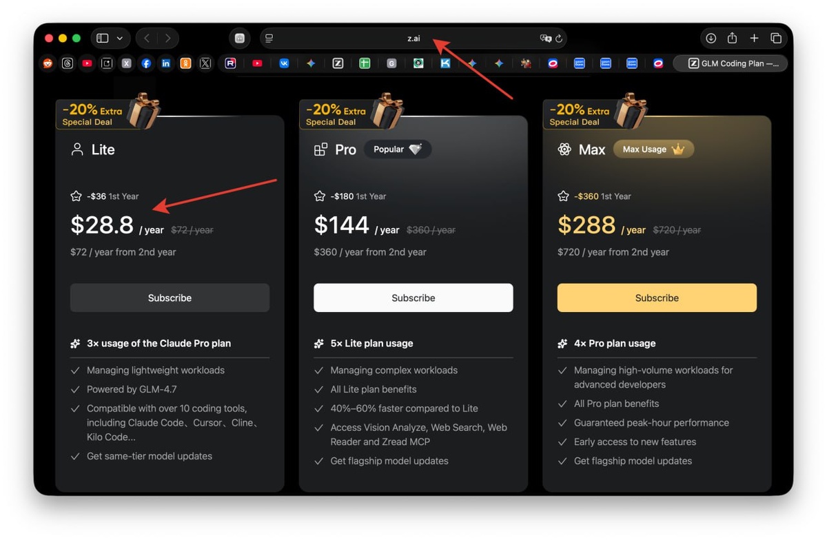28$ в год подписка на ИИ GLM для разработчиков. Копейки ведь. А модель очень мощная. Читал, что ребята даже в лимиты не упираются, а код пишет достойный. Из РФ никакие прокси не нужны.