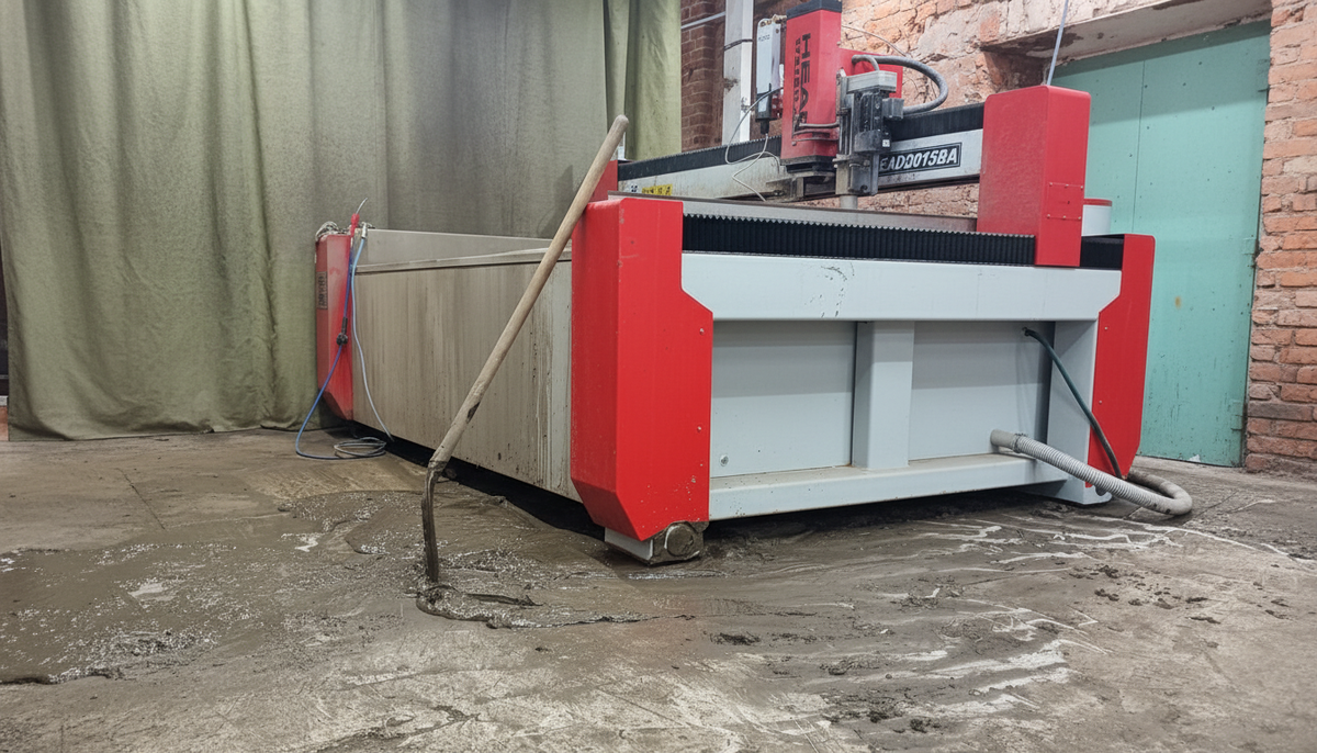 Гидроабразивная резка даёт точные и чистые разрезы. Но у владельцев станков есть одна большая и постоянная проблема. Иногда этого шлама очень много. Ручная очистка тяжёлая и долгая. Однажды нам пришлось вычищать ванну с 15–20 тоннами сырого песка и множеством металлических кусков. Работа заняла целый день и потребовала большой физической силы. Шлам забивает ванны и ловушки. В нём встречаются мелкая стружка и большие заготовки. Лопата застревает, тачки ломаются, приходится тянуть тяжёлые куски вручную. Из-за этого растут простои и износ оборудования. Иногда обнаруживают серьёзные повреждения, которые видны лишь после полной очистки. Персонал устаёт, расходуется много времени и сил. Заказчик беспокоится, а работа становится менее рентабельной. Накопление шлама увеличивает расходы на обслуживание. Оборудование работает хуже и чаще выходит из строя. Производство простаивает. Появляются риски для безопасности работников. Требуется надёжный и быстрый способ очистки ванн без постоянной ручно