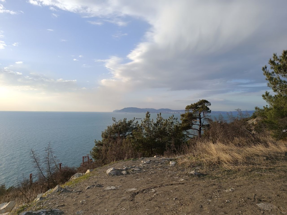 Кабардинка зимняя Тут сошлись горы, хвойный лесок и моря. Воздух такой убаюкивающий, что просто ложишься и спишь на свежем воздухе. Хвойный опад позволяет спать на мягкой и тёплой земле. Как же хорошо тут спится под видом неба, шум волн и свежий воздух. Почти моментально отключаешься.