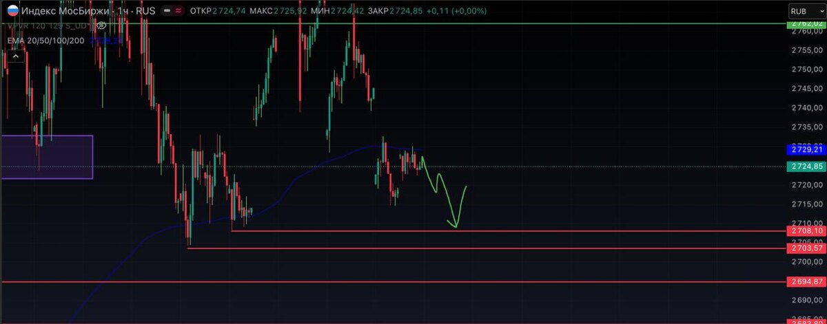 ⚡️ Доброе утро! Сегодня суббота и торгв на бирже не проводится. Пятницу закончили снижением с ретестом ЕМА 200, что может говорить о продолжении нисходящего тренда со следуюей недели. 🤔 Конечно, всегда могут выйти какие-то новости, которые развернут тренд, как это было не раз, но их прогнозировать мы не можем. 🏦 Мой базовый сценарий на следущую неделю - тест 2700, хоть и коротковременный. Всем хорошего дня!🤝🏻