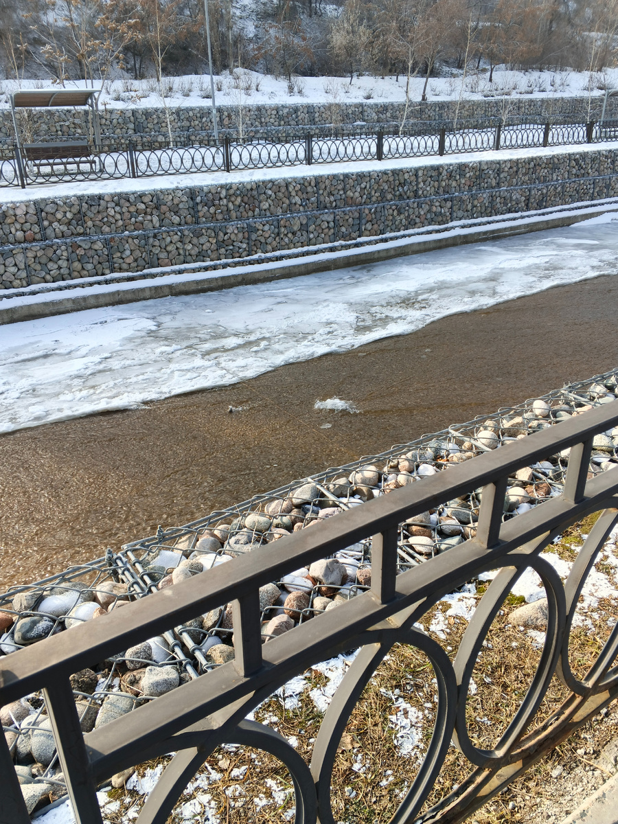 Вчера в обеденный перерыв прогулялся по речке Весновка. Это в Алматы. Речка небольшая, холодная, быстрая. В черте города русло забетонировано, вдоль речки положены дорожки для прогулок и устроены площадки для разных, как сейчас говорят, активностей.