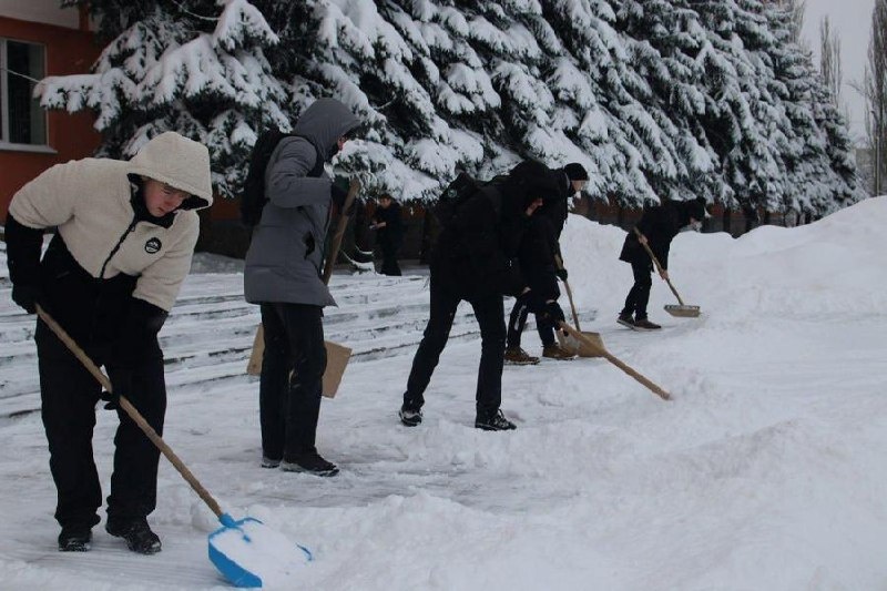 В Гомеле руководство Политеха и студенты активно участвуют в уборке снега