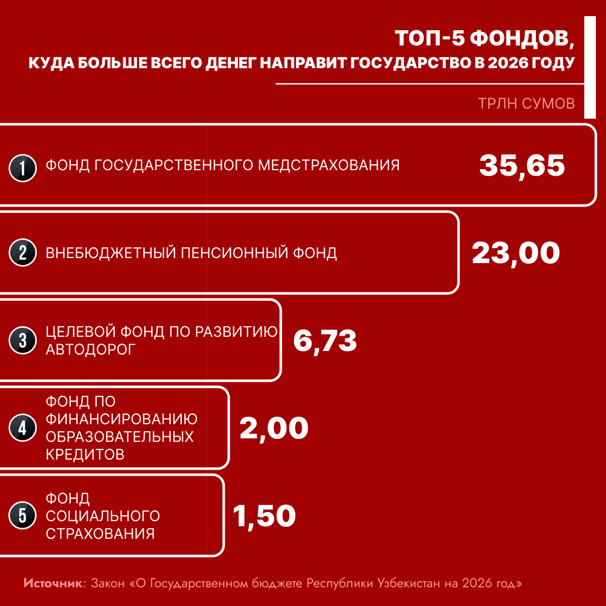 Медицина, пенсии, дороги – основные статьи расходов госбюджета Узбекистана