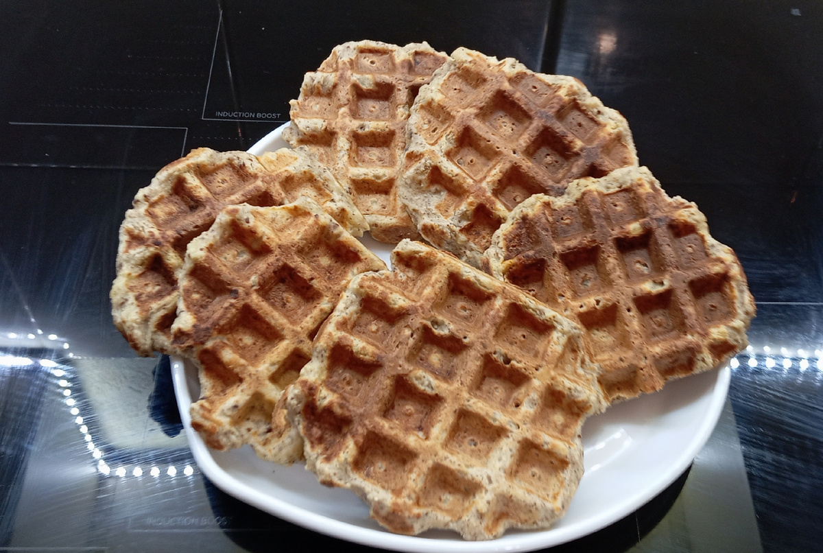 Приветствую Вас, мои дорогие друзья! Как давно я не пекла мои любимые вафли! У меня осталась от праздников баночка рикотты- решила поискать рецепт вафель с этим мягким сыром . Нашла неплохой рецептик с малым количеством продуктов: 2 банана, 2 яйца, 200гр. рикотты, 90 гр. муки рисовой и шоколадные капли. А вот мой набор продуктов для этого рецепта. Как видите, я заменила шоколадные капли на просто шоколад и муку взяла не рисовую, а миндальную и пшеничную. Давайте готовить! Очищаем и разминаем в миске два банана. Сначала разминала вилкой, потом мялкой (для пюре). Добавляем к массе рикотту и тоже разминаем, чтоб не было комочков Добавляем яйца и муку. Не забываем и про шоколад. Я чуть-чуть потерла на тёрке . Масса готова - идем выпекать. У меня недорогая, но очень хорошая вафельница. Нагреваем ее и смазываем растительным маслом. У меня масло авокадо . Ложкой выкладываем тесто и ждём 5 минут . И вот первая партия вафелек готова! Толстенькие, ароматные, очен