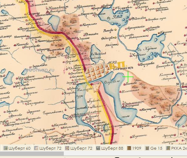 В 10–11 вв. центр этой агломерации, игравшей важную роль на пути «из варяг в греки», находился при впадении р. Торопа в оз. Заликовское с курганным могильником Торопец-1 (в т. ч. трупосожжения 2-й пол. 10 или нач. 11 вв., трупоположение воина 2-й пол. 11 – нач. 12 вв.) и на левом берегу р. Торопа (урочище Лодейница). Среди находок: оружие, саманидские дирхемы, клад (серебряные браслеты, зап.-европ. денарии, позднейшие чеканены в 1047–75, и др.).»