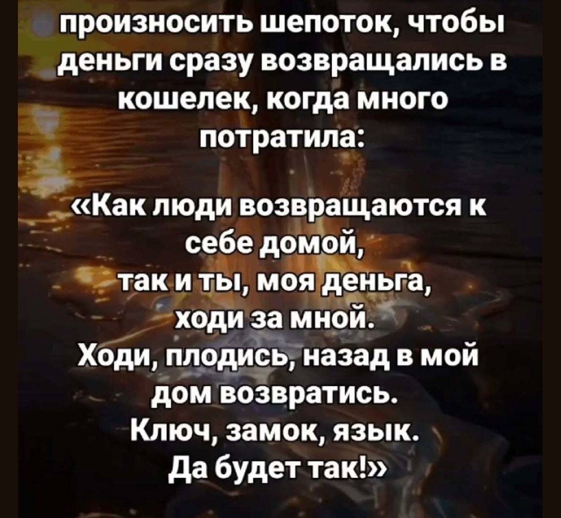 Шепоток чтобы деньги возвращались в кошелек👛