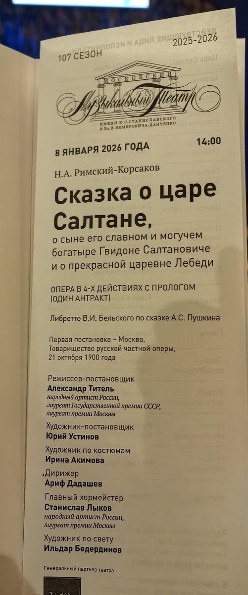 В новогодние дни все становятся немного детьми. Люди веселятся, верят в чудо и с удовольствием смотрят сказки. Опера Н.А. Римского-Корсакова "Сказка о царе Салтане, сыне его славном и могучем богатыре Гвидоне Салтановиче и о прекрасной царевне Лебеди" в 4-х действиях с прологом в Московском театре МАМТ, оказалась как нельзя кстати.