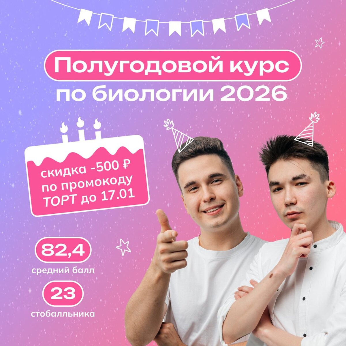 Думали, оставлю вас без подарка? 🥳 🎂 До 17 января запускаю промокод ТОРТ, который дает скидку в 500₽ на первый месяц полугодового курса! Старт полугода через 6 дней, так что у тебя еще есть шансы попасть на первый онлайн-вебинар 🙂 🔥 Почитать подробности про полугод можно тут, а применить промокод ТОРТ можно тут!