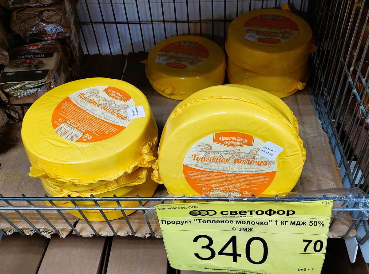 Впервые встречаю в Светофоре такую новинку от «Новосибирская сыроварня». Ярко желтый круг с названием "Топленое молочко" - это молокосдержащий продукт с ЗМЖ произведенный по технологии плавленого сыра. Производится на современном немецком оборудовании по высоким стандартам качества при участии высококвалифицированных специалистов. В составе производимой продукции используются натуральные ингредиенты. Жирность 50%. Расфасовано на 1кг по цене 340,7 рублей