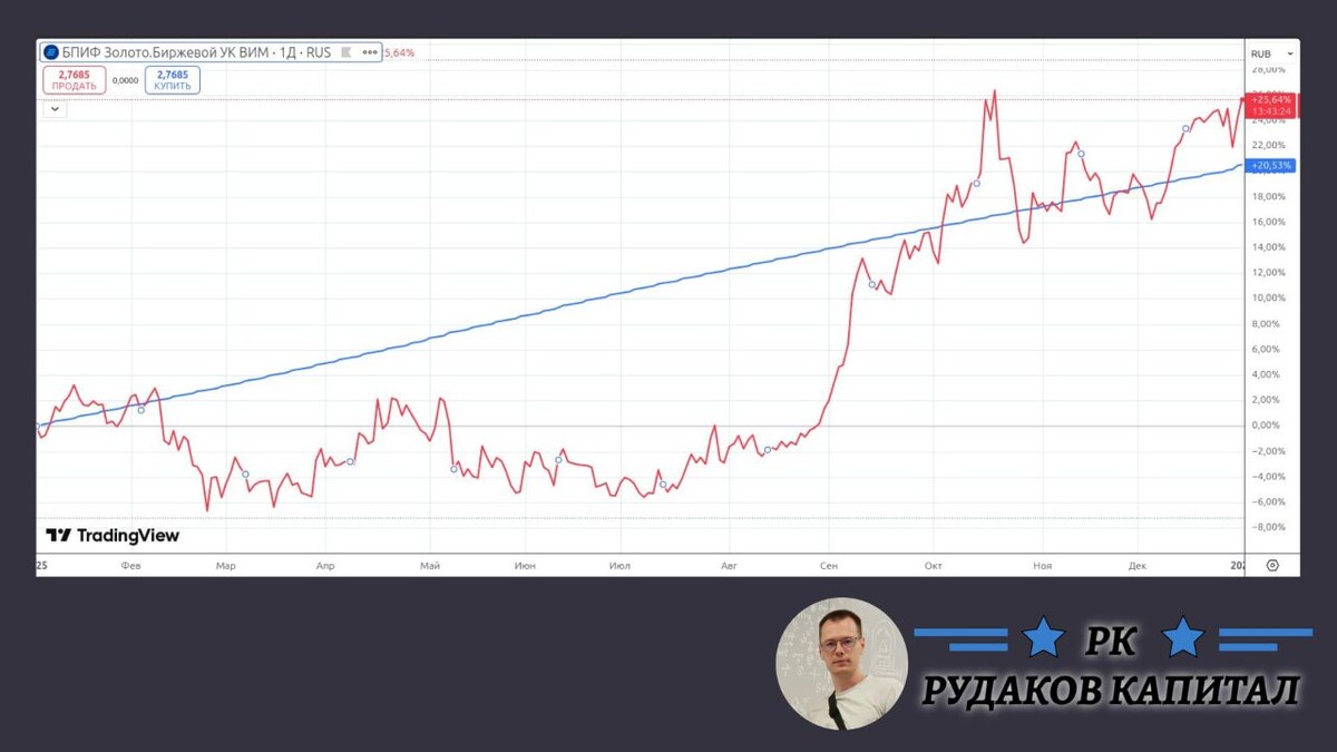Если же хочется отыграть рост золото, то нужно было брать актив создающий добавочную стоимость - акции золотодобывающих компаний. ⛏