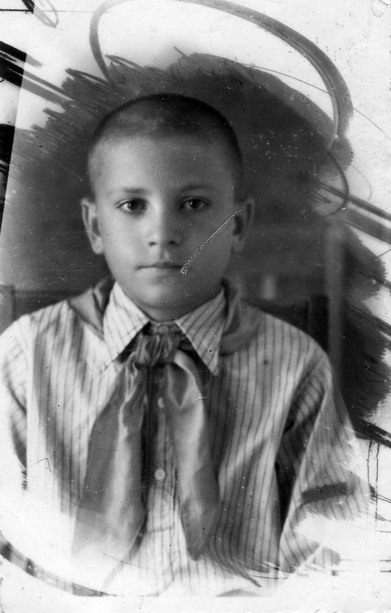 Пионер с пионерским галстуком символом Всесоюзной пионерской организации, 22 августа 1950 год.