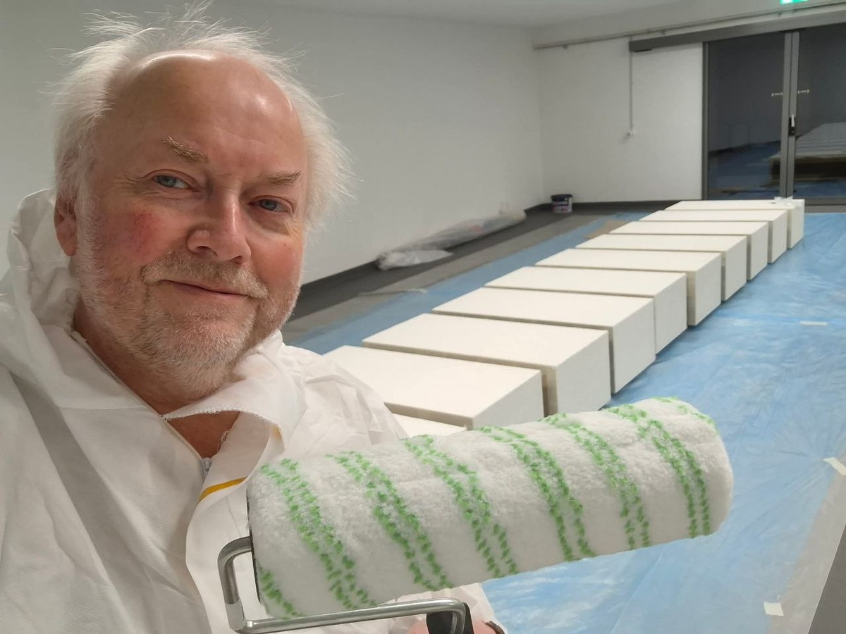 Darum habe ich mit der Revovation der schon vorhandenen Sockel begonnen. Alles ist so organisiert, dass ich die Arbeit alleine erledigen kann. Das streichen mit dem Farbroller macht Spass, das vorherige abkleben weniger. Die sind doch noch schön - warum streichst du die trotzdem, wurde ich gefragt? Auf dem Einzelfoto könnt Ihr den Unterschied sehen. Der Museumsraum ist ganz neu renoviert, da müssen auch die Sockel gestrichen werden. Später geht das nicht mehr. Новости из Швейцарии. Если коротко, Вальтер сам красит, клеит, собирает. В общем, ремонт нового здания музея Суворова идёт.