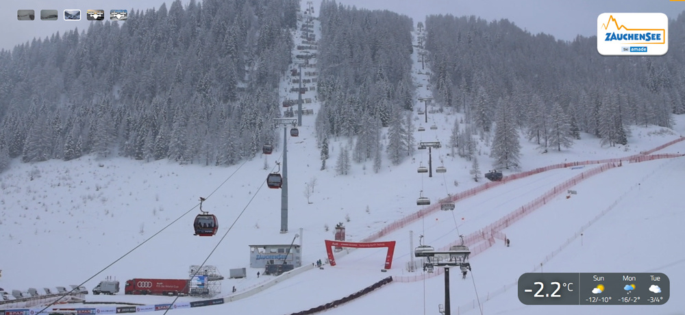 Если бы горнолыжницы стартовали с классической отметки старта, можно было бы с уверенность сказать, что трасса Kälberloch является самой крутой в женском Кубке мира. В 2002 году она была изменена для проведения финала Кубка мира: верхняя часть была расширена, а мужской старт был перенесен на Гамскогель. С 2007 года женщины также стартуют в скоростном спуске с этой вершины. Это сделало трассу в Цаухензее одной из самых зрелищных и технически сложных в женском Кубке мира по горнолыжному спорту. Разгон больше напоминает трамплин для прыжков на лыжах – максимальный уклон составляет 70%. Но сегодня мы этот участок дистанции не увидим.