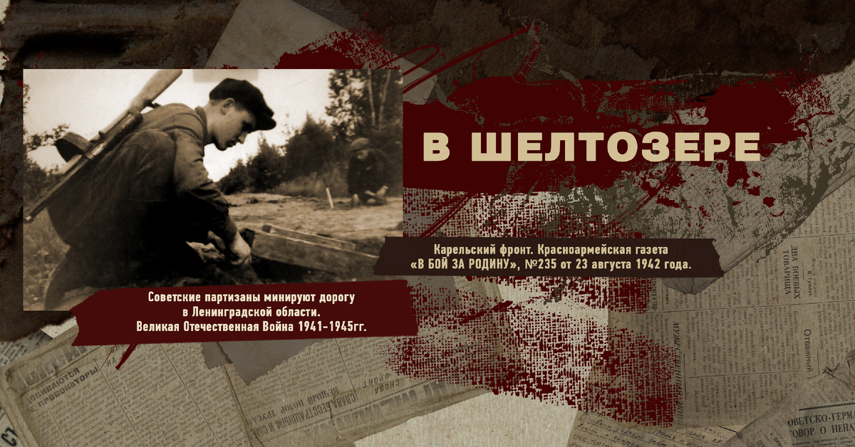 Захватив наше село Шелтозере, белофинские бандиты сожгли среднюю школу, здание райисполкома, райкома партии, больницу. Всего в районном центре они в первый же день уничтожили 35 лучших зданий, которыми гордились шелтозерцы. Группа белофиннов ворвалась в районную библиотеку и стала из окон швырять в грязь книги. Потом все эти книги были снесены в овраг и сожжены на большом костре. Здание библиотеки фашистские грабители превратили в склад отобранных у населения «трофеев» - одежды, обуви, велосипедов и прочего имущества. Около сгоревшей школы белофинны собрали более ста человек колхозников и потребовали выдачи партизан. Но колхозники молчали. Тогда началась зверская расправа. На глазах у всех шюцкоровцы мучили работника связи комсомольца Мельникова. Не добившись от него ни слова, изверги его застрелили. Через несколько дней финны назначили собрание жителей села для выбора старосты. На это собрание никто не пришел. Тогда они согнали население плетьми и объявили о назначении старостой преда