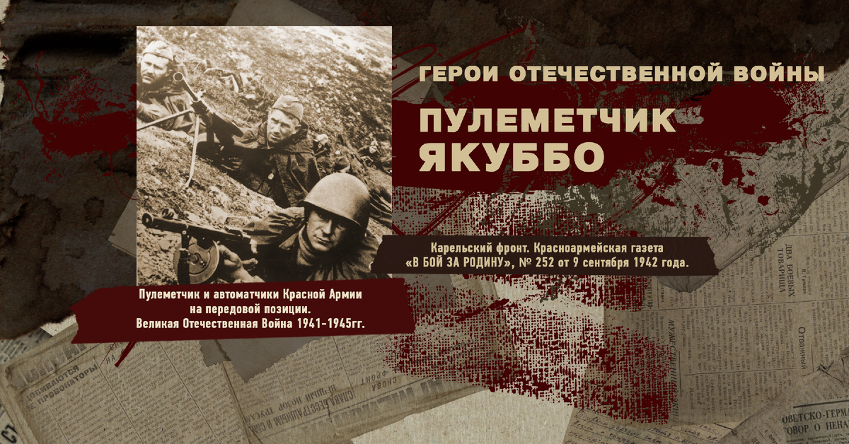 На болоте перед темно-зелеными лесистыми сопками возникли черные клубы дыма. Они разрастались и расплывались широкой полосой. И сейчас же в воздухе появилось несколько самолетов с красными звездами на крыльях. Ориентируясь по черной дымовой завесе, летчики стали сбрасывать бомбы на сопки. Там зарылись в землю фашисты. Еще не успели затихнуть раскаты взрывов авиабомб, как по болоту под прикрытием дыма уже поползли советские пулеметчик и. Одним из первых среди них был Якуббо. Якуббо упрямо толкал свой станковый пулемет. Вот и дым стал реже, просветы сделались больше. Фашистский дзот яростно отстреливался. Появились первые раненые товарищи. И лютая злоба к врагу овладела сердцем Якуббо. Пора было действовать. Не торопясь и не горячась, пулеметчик уверенно взялся за рукоятки пулемета и заботливо начал выбирать цель... Одна очередь, вторая... Свинцовый град хлестал по амбразурам вражеского дзота до тех пор, пока враг не умолк. Тогда Якуббо выдвинулся еще немного вперед. И вдруг раздался взр