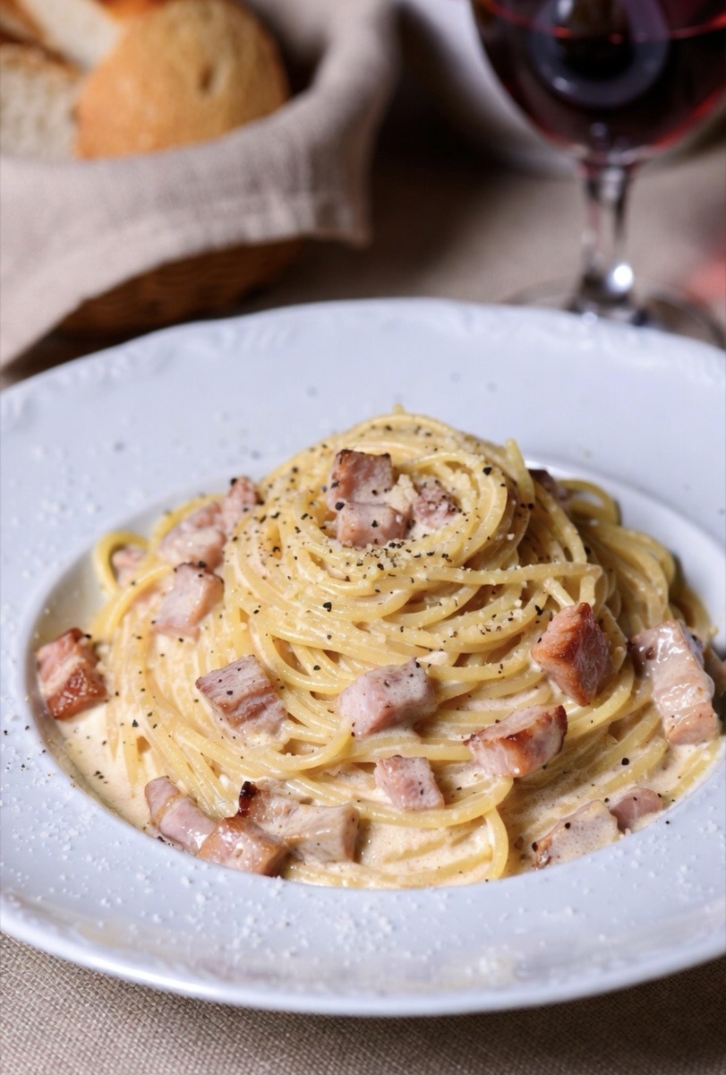 - Насыщенный аромат: бекон или панчетта в сочетании с пармезаном создают неповторимый вкус.