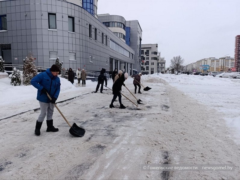 На субботнике трудится коллектив Гомельской центральной городской клинической поликлиники.