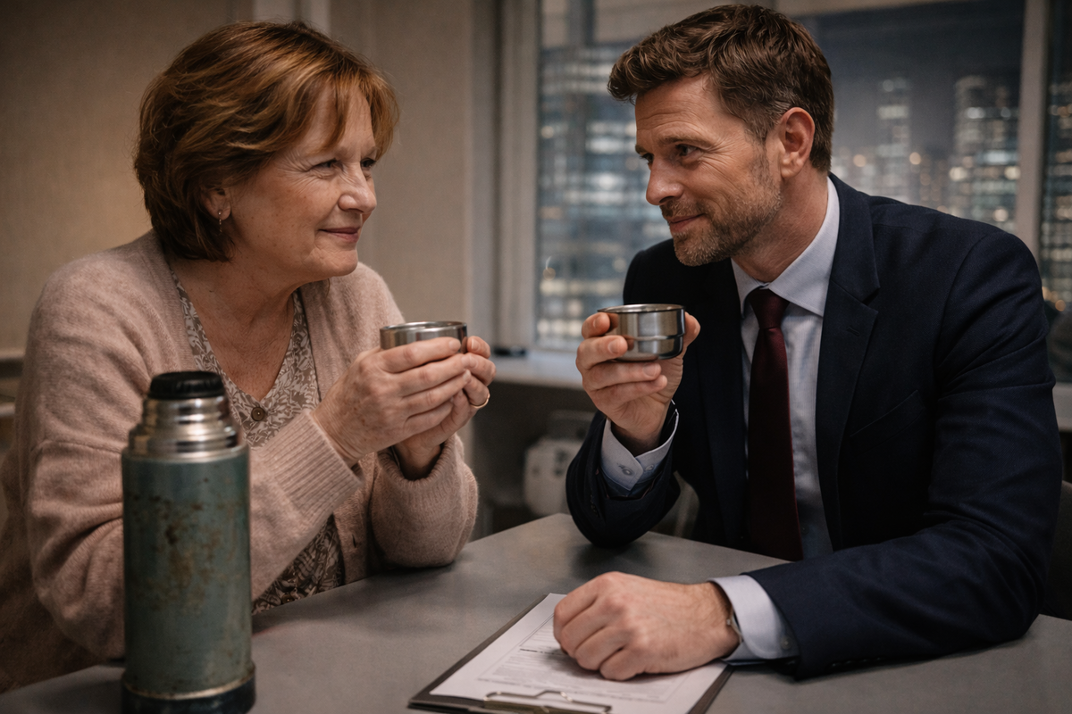 — Я учился в колледже на вечернем, — сказал он. — Экономика. Вы были преподавателем по бухгалтерскому учёту. И однажды, перед экзаменом, я пришёл на занятия без завтрака. Я работал ночью грузчиком. Вы увидели, что мне плохо, и налили чай. Из термоса.