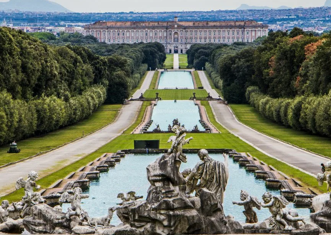 Королевский дворец в Казерте — грандиозный дворцово‑парковый комплекс в Южной Италии (регион Кампания), возведённый в XVIII веке как загородная резиденция неаполитанских Бурбонов. Его создание было продиктовано стремлением короля Карла VII (с 1759 г. — Карл III, король Испании): Проект разработал Луиджи Ванвителли (1700–1773), выдающийся архитектор эпохи барокко. Его замысел объединил французскую регулярность (ось симметрии, парадные анфилады), итальянское великолепие фасадов и скульптурного декора и инновационные инженерные решения (водоснабжение, вентиляция). Луиджи Ванвителли — выдающийся итальянский архитектор, рисовальщик и живописец эпохи позднего барокко, стоявший у истоков перехода к неоклассицизму. Соединил барочную зрелищность с классицистической ясностью форм. Применял перспективные приёмы сценических декораций, богатую палитру отделочных материалов и световые эффекты. Внедрил инновационные инженерные решения (водоснабжение, вентиляция, укрепление конструкций). Строительство