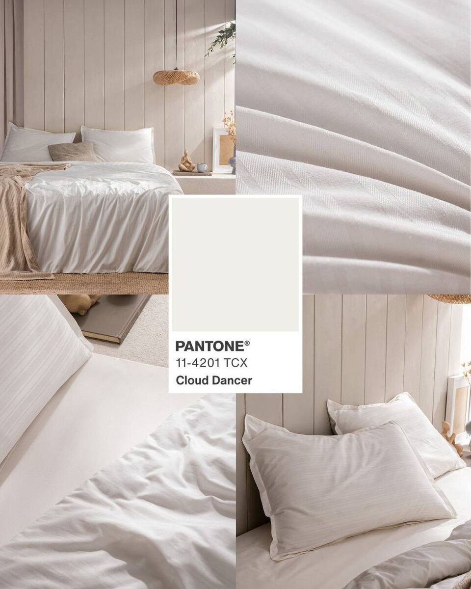 Pantone угадал наше настроение и выбрал цветом года Cloud Dancer🤍 Это не тот холодный белый, от которого веет скукой — он мягкий, «дышащий» и очень домашний. Представьте цвет первого пушистого снега или морозного утра, когда воздух свежий, но дома при этом тепло и уютно☁️ В Madame Coco мы обожаем такие оттенки! С ними в доме сразу становится визуально больше места, чистоты и уюта🫶