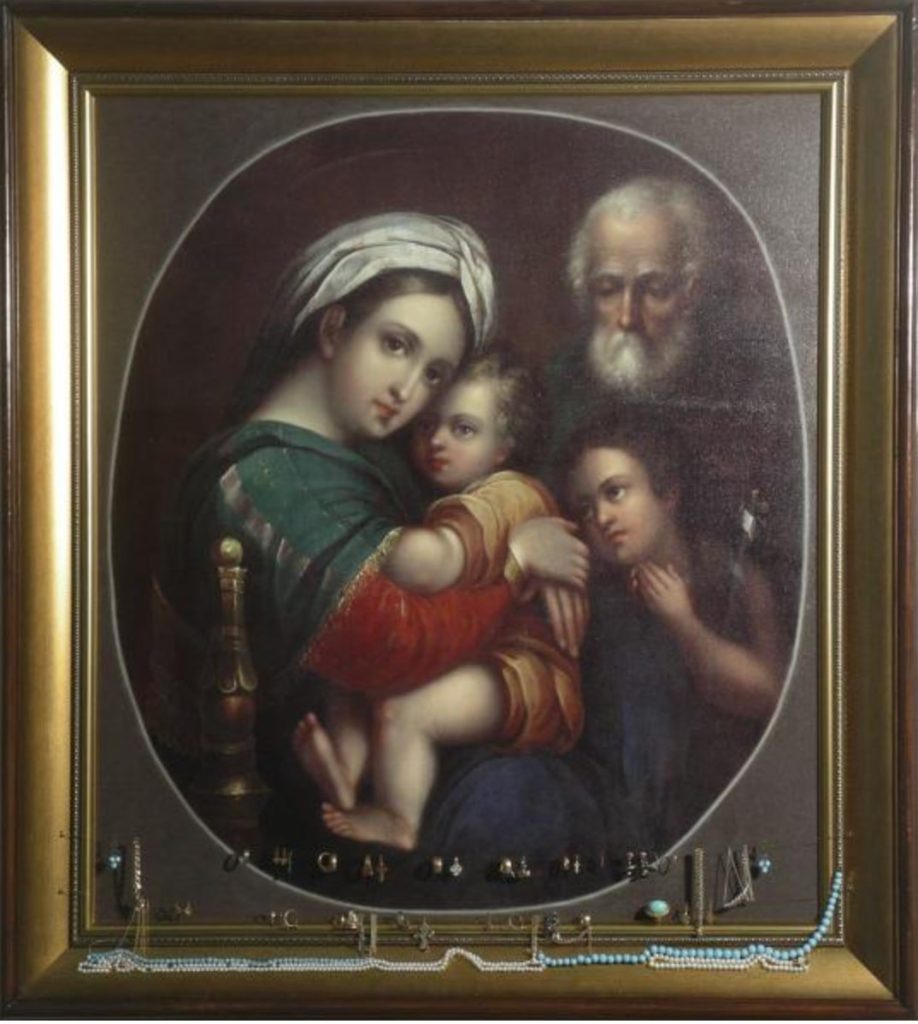 На дошедшем до нас списке XIX века Дева Мария изначально изображена была слева. Она обнимает Богомладенца, здесь Он в центре, а справа Их с Богородицей Двоих точно обрамляют младенец Иоанн Предтеча и святой праведный Иосиф. А вот в русской иконописной традиции святого праведного Иосифа и младенца Иоанна стали писать по разные стороны от Пресвятой, выписывая Ее, в частности, Владимирским образом (оберегающим, известно, центр Руси), – собственно, в центре иконы.