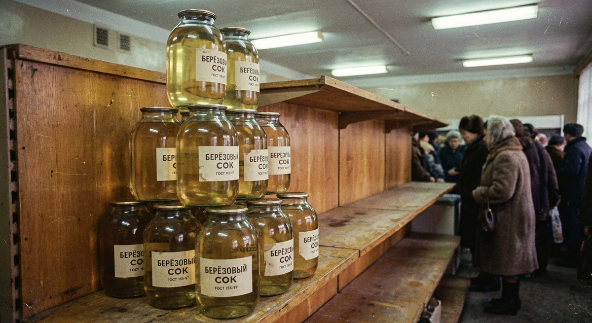 Если зайти в любой советский гастроном в эпоху позднего дефицита, картина была одинаковой. Пустые прилавки, сиротливые пирамиды консервов «Морская капуста» и... бесконечные, стройные ряды трехлитровых банок с прозрачной желтоватой жидкостью. Березовый сок. Он стоил копейки. Стакан в разлив — 8-11 копеек (дешевле только вода из крана). Западные туристы, видя это, впадали в ступор: «Русские пьют кровь деревьев?! Как вы это делаете?».