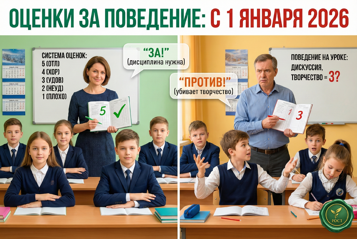 Со вчерашнего дня во всех российских школах официально вводят оценки за поведение. Родители спорят: одни "за", другие протестуют. Разбираемся, как будет работать новая система С 1 января 2026 года в российских школах вводятся оценки за поведение. Минпросвещения предложило три варианта системы — каждая школа выберет подходящий. Три варианта оценивания: Вариант 1: Пятибалльная система (как за предметы — от 1 до 5) Вариант 2: Трехуровневая (хорошее, удовлетворительное, неудовлетворительное) Вариант 3: Бинарная (зачет/незачет) Что будут оценивать? • Соблюдение правил школы • Уважение к учителям и одноклассникам • Участие в школьной жизни • Дисциплину на уроках Повлияет ли на аттестат? Пока непонятно. Минпросвещения не уточнило, будет ли оценка за поведение влиять на получение аттестата или поступление в вуз. Решение остается за школами. Родители разделились: "ЗА": "Наконец-то хулиганов будут наказывать!", "Дисциплина — основа обучения" "ПРОТИВ": "Субъективизм учителей", "Давление на де