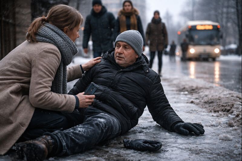 Она вспомнила, как прошлой зимой её мама поскользнулась у магазина. Тогда мама упала «красиво» — без крика, просто села на лед и не могла подняться, держась за бедро. И люди тоже шли мимо. Пока один парень не остановился, не поставил пакет на землю и не сказал: «Давайте руку. Не бойтесь. Я помогу». И в ту же секунду всё стало проще: мама поняла, что она не одна.