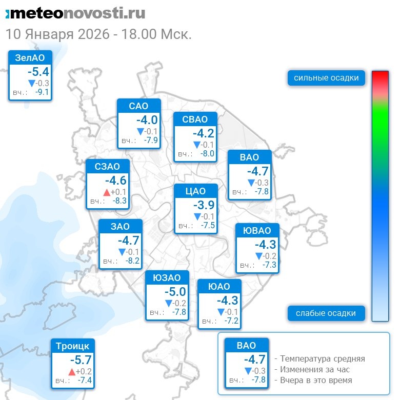 В 18:00 в Москве было от -6°C до -3.5°C, средняя температура -4.5°C #погода #Москва #зима #температура #10января #суббота