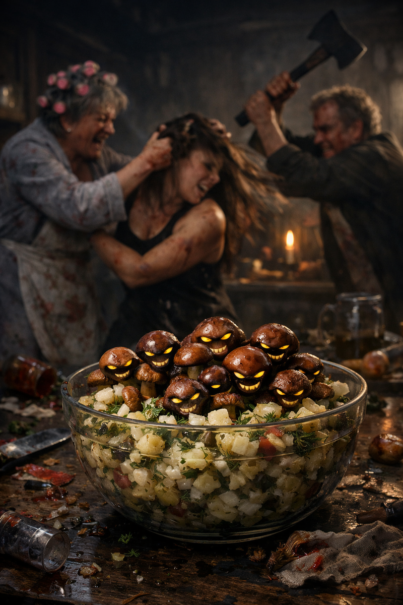 Салат, за который родственники дерутся насмерть, нужно всего лишь.... Рецепт для тех, у кого ещё остались силы и желание готовить. Потому что муж протоптал тропинку к холодильнику и укоризненно спрашивает "А что, есть совсем совсем нечего"? Нет, борщ я завтра (никогда) доем. Итак. Салат "Лукошко". Минимум усилий, максимум содержимого. Продукты. Картошка, маринованные огурцы, лук, опята. Придётся почистить и отварить картошку - основной ингредиент салата. Почистили? Порезали? Теперь лук - красный или белый. У меня красный. Вытираем слёзы, и крошим маринованные огурцы. Этот год был настолько огуречный, что у меня останутся банки до весны. А может, до свежих огурцов. И - собственно, грибы. Название "Лукошко" намекает. Грибы. Опята. Покупные, потому что настоящие грибы в этом году решили, что мы их недостойны.