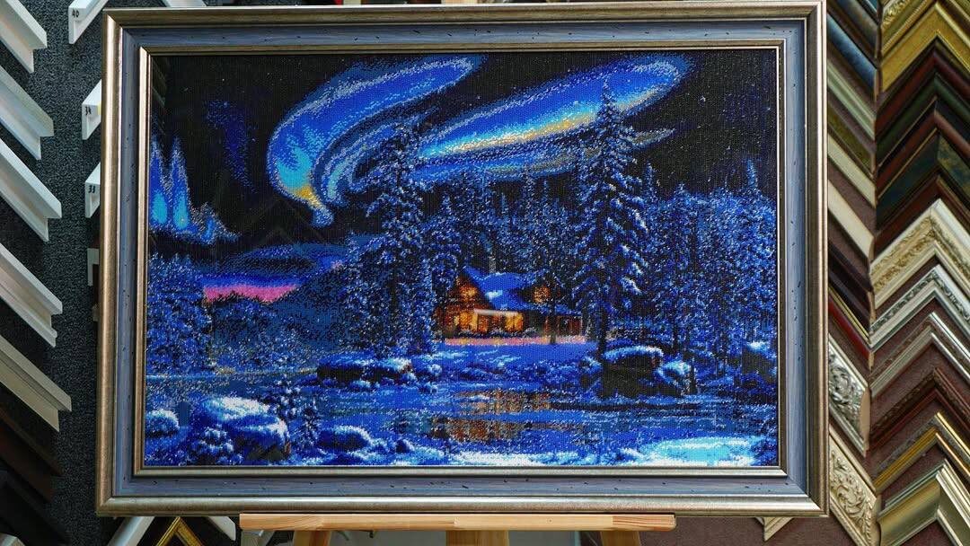 Любовь Сергеевна из Северодвинска вышила вот такую замечательную картину бисером «Северное сияние».