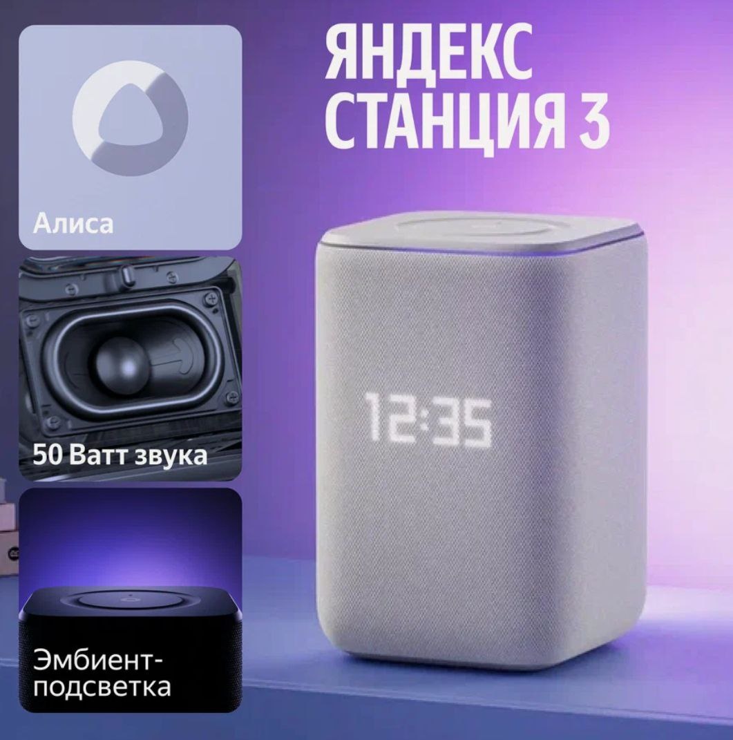 Яндекс Станция 3 — это современная умная колонка с голосовой помощницей Алиса для дома, которая сочетает в себе качество звука, управление умным домом и атмосферную подсветку.