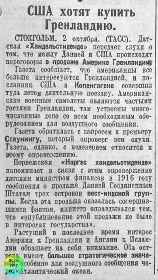 В 1934 году не было ни Трампа, ни "русских и китайских военных кораблей повсюду", а желание купить Гренландию уже имелось