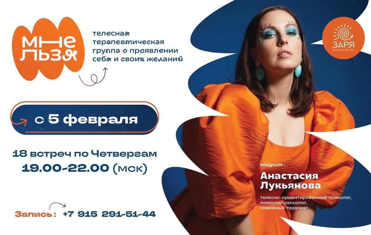 ❤️ Другой - уверенно говорить о своих желаниях партнёру. 💔 Третий - позволить себе проявляться в своей боли. ✨ Четвертый - желать, выбирать, достигать и получать удовольствие от этого. Смыслы разные, но ценность одна - выражать себя настоящего в мир! 🗺 Про это и есть моя терапевтическая группа «Мне льзя». Была онлайн, теперь живая телесная в Москве. Будем исследовать темы страха, стыда, вины, внутреннего критика, неуверенности, агрессии и сексуальности, учиться звучать и проявляться свободнее там, где хочется. 🌐 Ключевые темы группы - www.b17.ru/training.p... 🕰 18 встреч по четвергам с 19.00 до 22.00 С 5 февраля по 11 июня. Автор и ведущая группы: Анастасия Лукьянова, телесно-ориентированный психолог, сексолог, семейный и групповой терапевт. ❓️ В чем вы себя ограничиваете? Пройдите диагностику через аудиопрактику ⬅️ ➡️Отзывы о группе «Мне льзя» Запись ➡️ Анастасия Лукьянова ⬇️⬇️⬇️ Мы в ВК Мы на Рутуб Мы в ТГ Мы ВК видео Мы на Дзен Мы в МАХ
