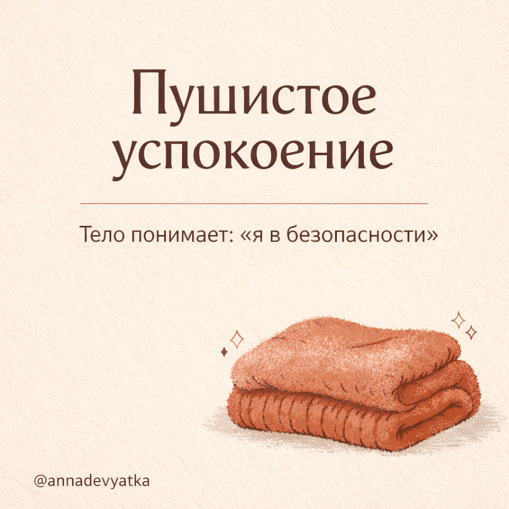 Кто-то выбирает пушистый халат или свитер, потому что в нём легче выдохнуть. Кто-то гладит плед, перебирает ворс, прижимает подушку к груди, обнимает кота, прячет руки в мягкие рукава.