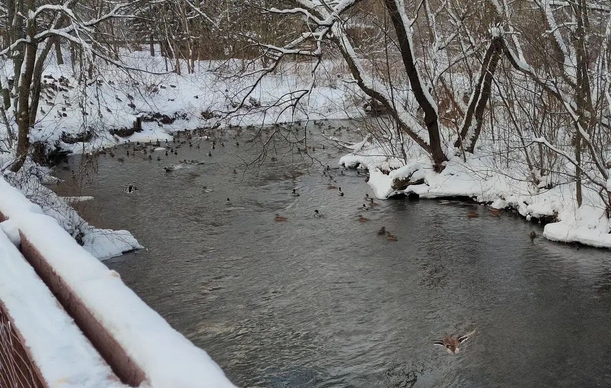 Всегда было интересно, куда утки деваются зимой. А вот они - на незамерзающей воде, активно подкармливаемы местными жителями.