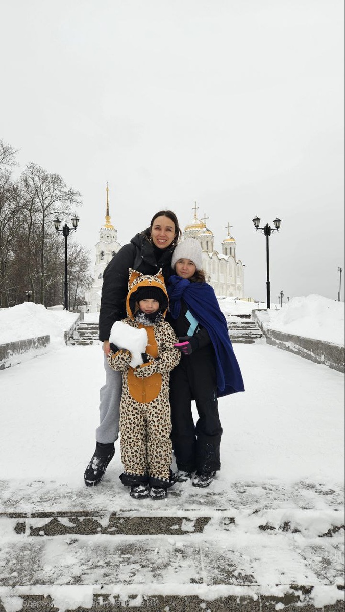 ! 🎉 И у нас случилось мини-путешествие 😁 На самом деле я ещё год назад для себя решила, что мои матрёшки уже выросли для небольших выездов выходного дня, но этот был внеплановый 🙈 Изначально я хотела вернуться в Москву из Нижнего Новгорода а субботу, на вечер был запланирован урок рисования. Посмотрев маршрут, я приуныла... под Гороховцом фуры не могут въехать в гору, несколько крупных аварий и время в пути около 9 часов и оно увеличивается. Максимальное было 10 часов 30 минут ( вместо 5 😁). Решила тормознуть на ночёвку во Владимире и я не пожалела ( ну разве что стоимость простой гостиницы меня впечатлила 😂). Вечером мы отдохнули на белоснежных простынях ( обожаю это белое плотное постельное бельё в отелях 😍), а утром пошли погулять, ну раз уж мы там оказались. Старая часть города уютная и компактная. Магазинчики, музеи, узкие улочки на холмах и очень много церквей! Хоть и зима, но заметно, что город очень зелёный летом. Мы прогулялись по центральной улице Большая Московская, з