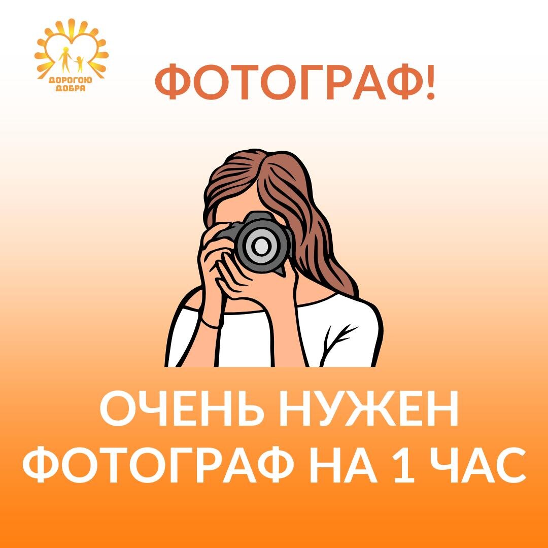 upd 20: 51 - волшебник нашелся! ура! Друзья! Просим помощи, очень нужен фотограф завтра на 1 час с 14 до 15 часов. Съёмка детского мероприятия - без ретуши и обработки. Большой срочности в передаче готового материала - нет. С радостью угостим чаем и вкусняшками после детского спектакля. Подготовим благодарственное письмо, поможем оформить волонтёрскую книжку и зачесть первые добрые часы🧡 Ваша миссия - сохранить на память кадры для детей о нашем добром празднике! Ждем отклика в комментариях.