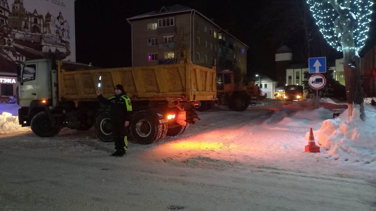 🚜 Несмотря на вечернее время работа по уборке и вывозке снега в Несвиже не прекращается. В эти минуты спецтехника работает на улице Чапаева